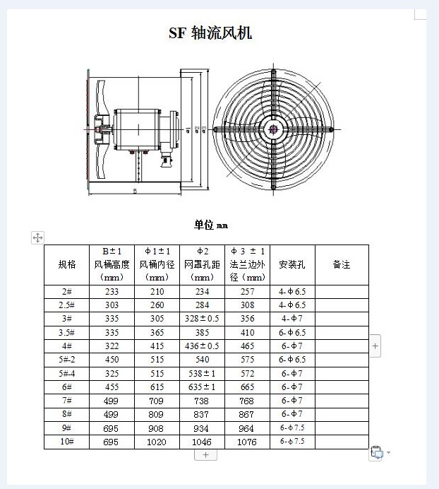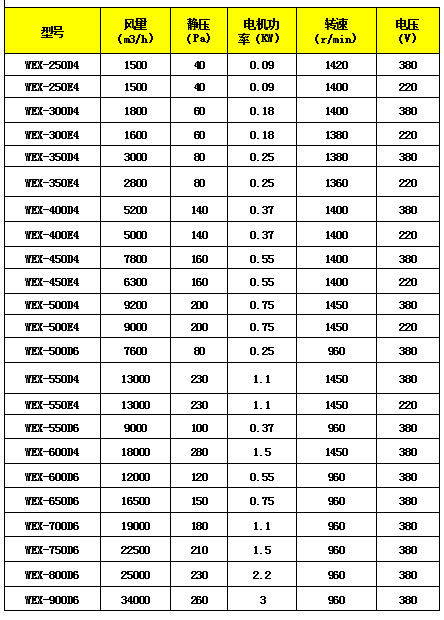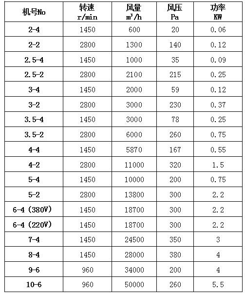 軸流風機型號及參數(shù)表、外形尺寸圖