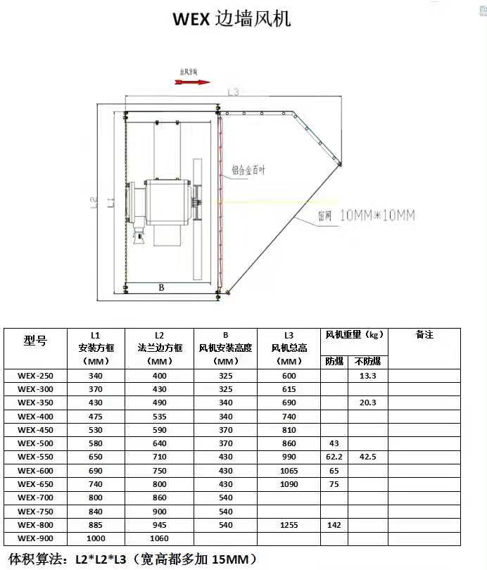 (1)BWEX邊牆式(shì)軸流風機圖片、技術參數及外形(xíng)尺寸圖如下: