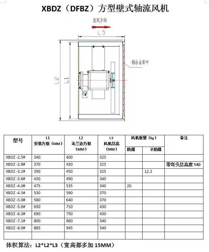 (2)下麵是DFBZ係列方形(xíng)壁(bì)式軸流風機圖片、技(jì)術參數及外形尺寸圖如(rú)下: