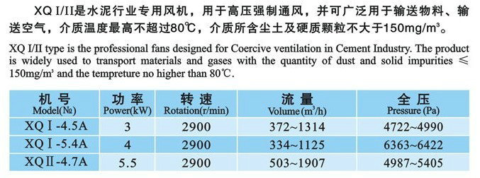 3、XQ型高壓離心(xīn)通風機(水泥專用高壓風機)