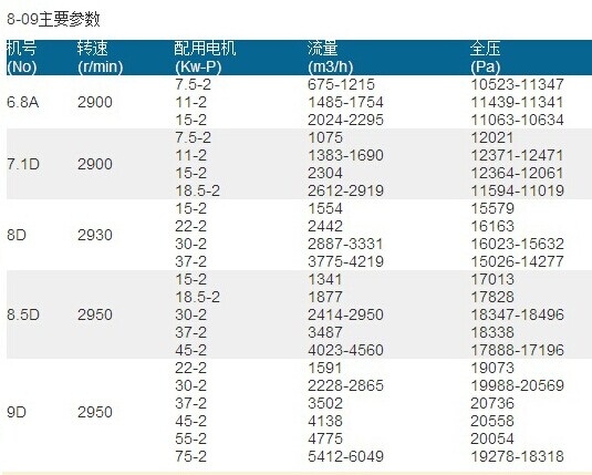 8-09、9-12型化鐵爐高壓離(lí)心風機,適合於1-7L/h熔化率的化鐵(tiě)爐鼓風性能要求(qiú)。該風機還(hái)可(kě)作(zuò)為各種熔爐、鍛冶爐的鼓風用,也適用於輸送無腐蝕性、不自燃、不含有粘性物質的氣體。輸(shū)送介質的(de)溫度不超過(guò)80℃,所含塵土及硬質細顆粒不大於(yú)150 mg/m3。