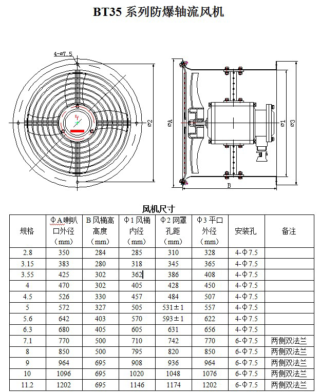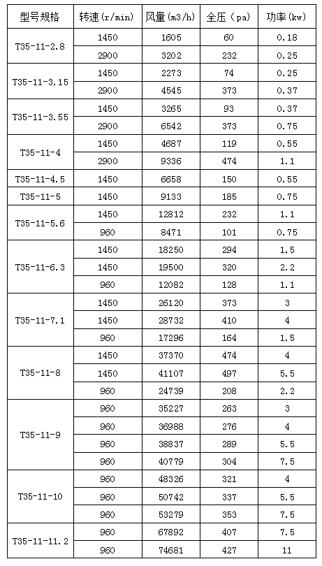 T35-11l軸流風機性能參數及外形尺(chǐ)寸表