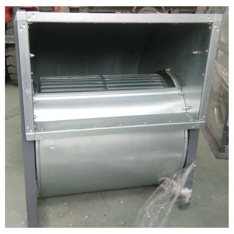 DKT外轉子雙進風空調離心風機(jī),進風口為優質鋼板製(zhì)作,裝於風機兩側,與軸向(xiàng)平行的截麵為曲(qǔ)線(xiàn)型,氣流(liú)進大通暢,損失小。